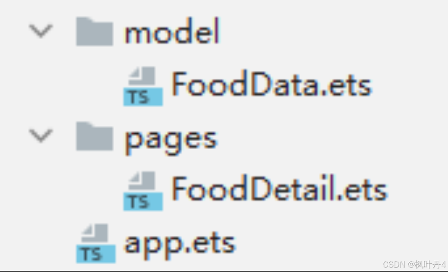 创建页面入口组件为FoodDetail,在FoodDetail中创建Column,设置水平方向上居中对齐 alignItems(HorizontalAlign.Center)。MyComponent组件名改为FoodImageDisplay,为FoodDetail的子组件。