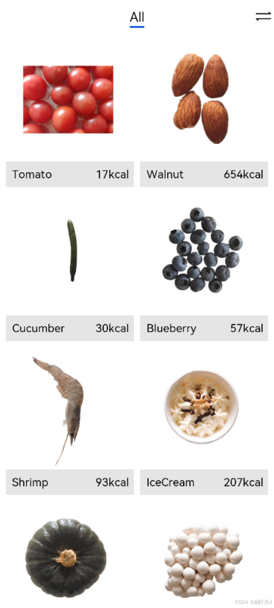 8. 实现2 * 6的网格布局(一共12个食物数据资源)。