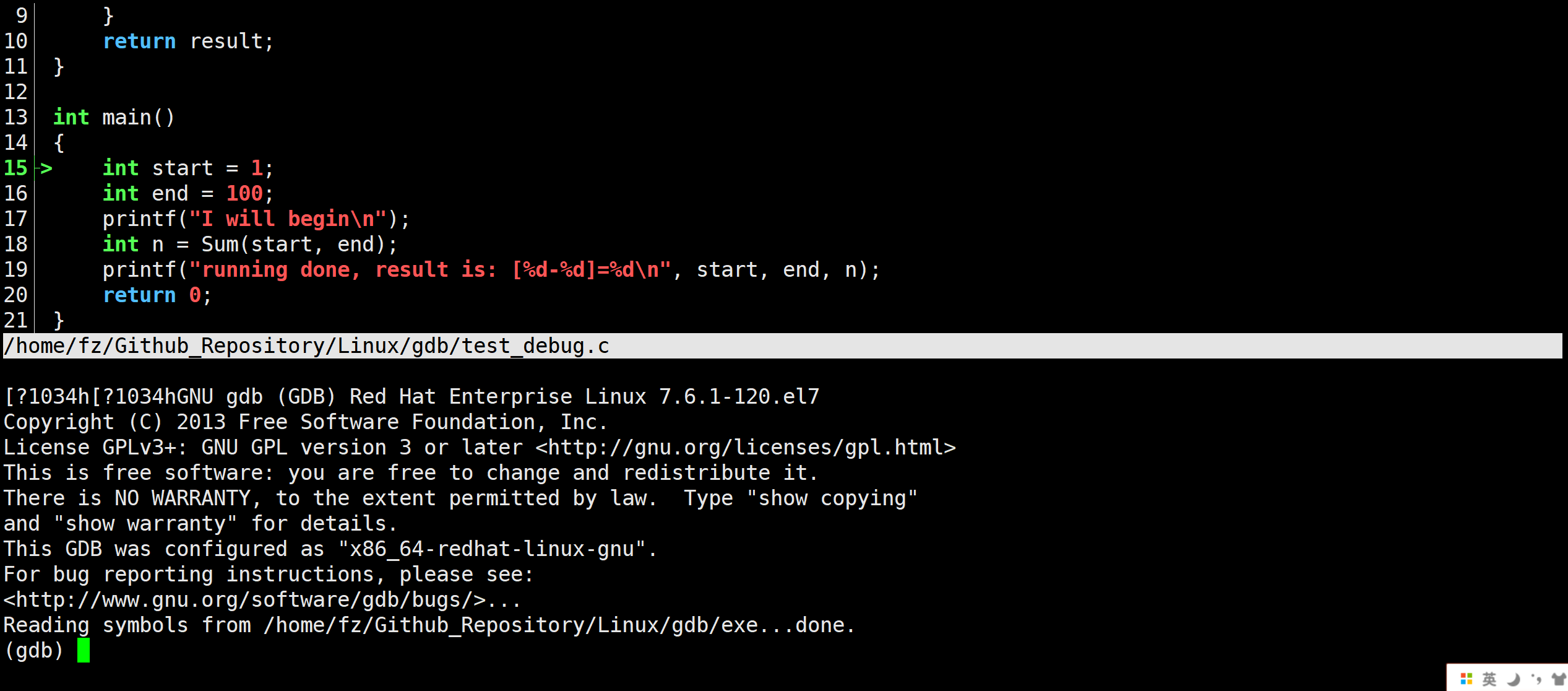 Enter 键:重复上一次命令。Ctrl + c:切换至命令模式。Ctrl + d:退出 CGDB。CGDB 会在窗口上方显示代码,方便查看调试位置。