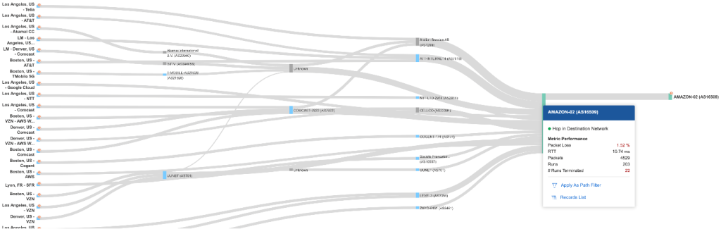 基于云的监控缺乏对这些中间跳数的洞察,尤其是在跨运营商和对等交换的情况下,导致对网络性能和真实用户体验的看法支离破碎。