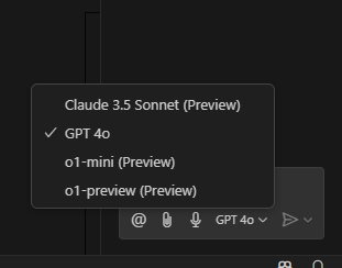 去年,Copilot Chat随GPT-3.5和后来的GPT-4推出。之后又更新了基础模型版本,根据不同的延迟和质量要求使用从GPT 3.5-turbo到GPT 4o、4o-mini。