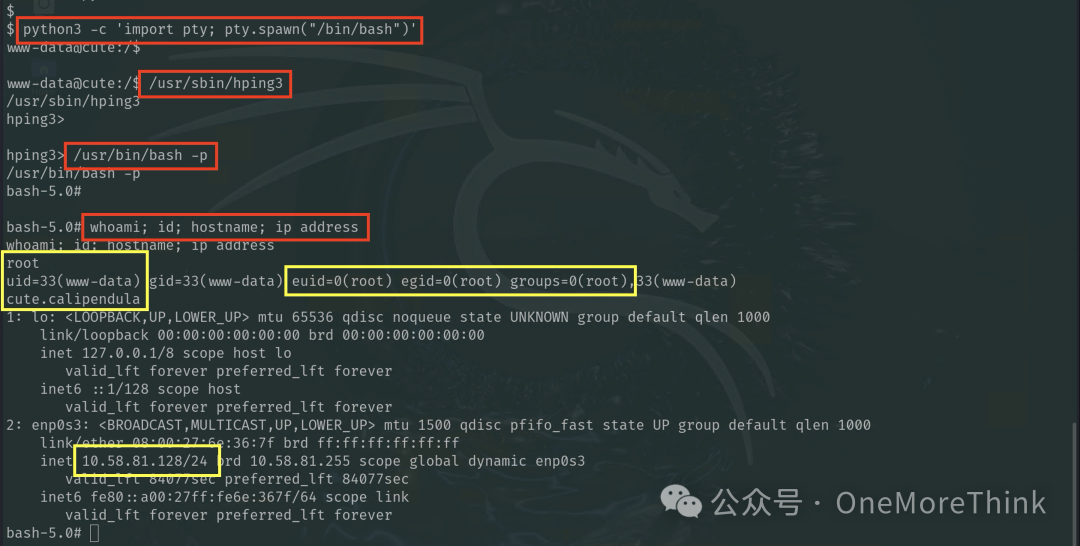 任意用户执行hping3命令时,是以root用户的权限执行。