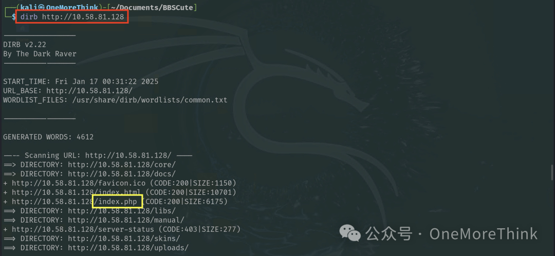 扫描80/HTTP的目录和页面,发现/index.php页面。