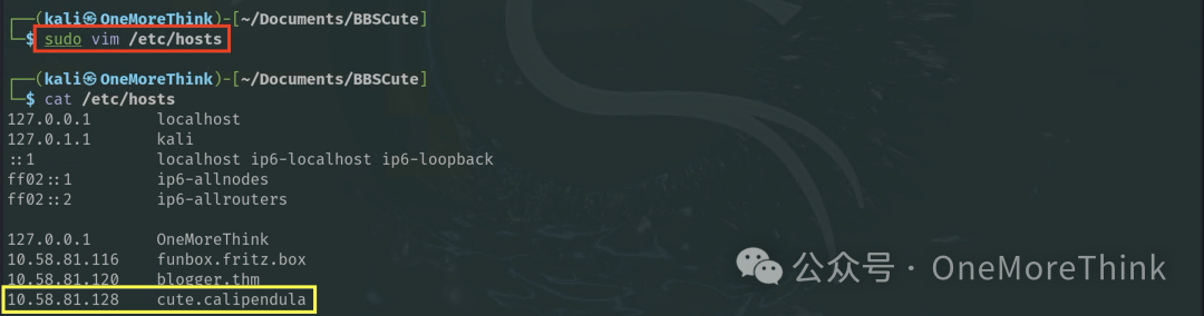 由于图片马地址使用了域名,需要在Kali中绑定域名。