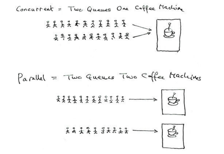 - 并⾏: 多个进程在多个CPU下分别,同时进⾏运⾏,这称之为并⾏