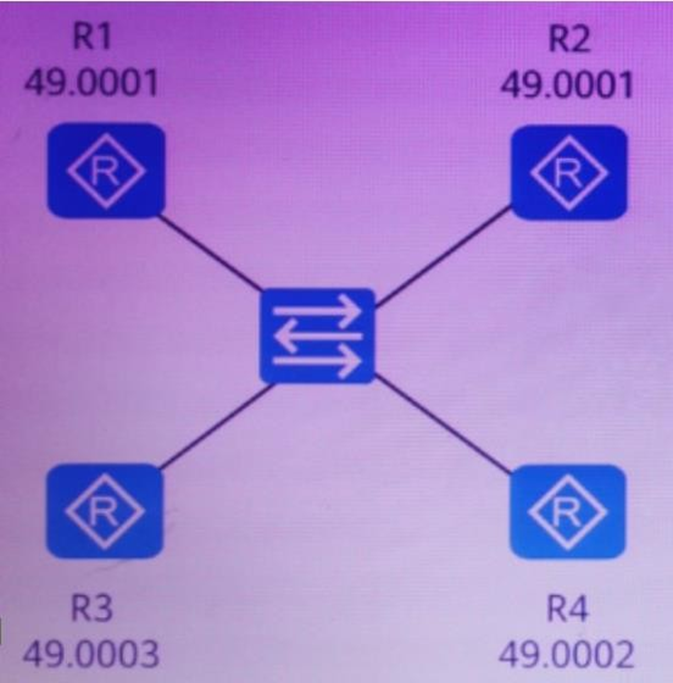 19.四台路由器运行 IS-IS 且已经建立邻接关系,区域号和路由器的等级如图中标记,R1 和R2 之间为PPP 链路,R3 为 DIS,以下描述中正确的是哪些选项?