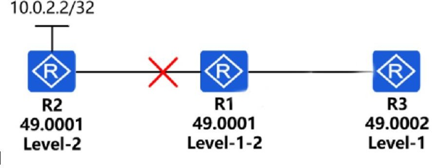 3.三台路由器运行 IS-IS 且已经建立邻居关系,区域号和路由器的等级如图中标记,如果 R1 和R2 之间的链路中断,下列说法正确的有?