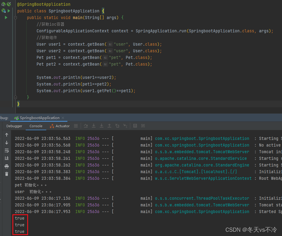 System.out.println(user1.getPet()==pet1);