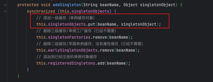 // 添加到一级缓存singletonObjects中
