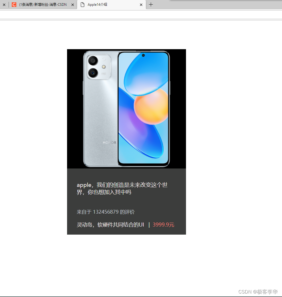 简介:本文以最通俗易懂的语言为读者提供一个经典CSS小案例,商品介绍模块,并且结合时事,以Apple14为案例进行讲解。