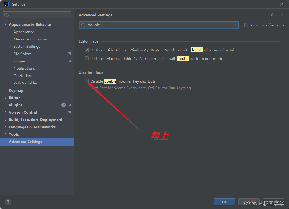 取消双击Shift全局搜索: