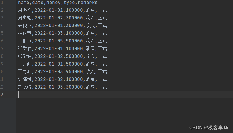 需求:有一份账单文件,记录了消费收入的具体记录,内容如下: