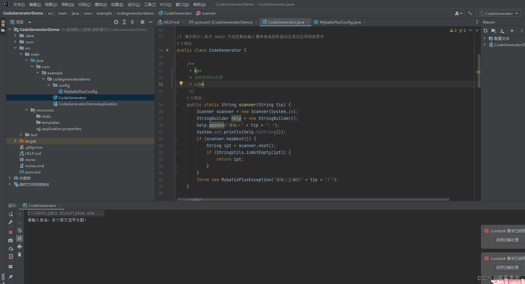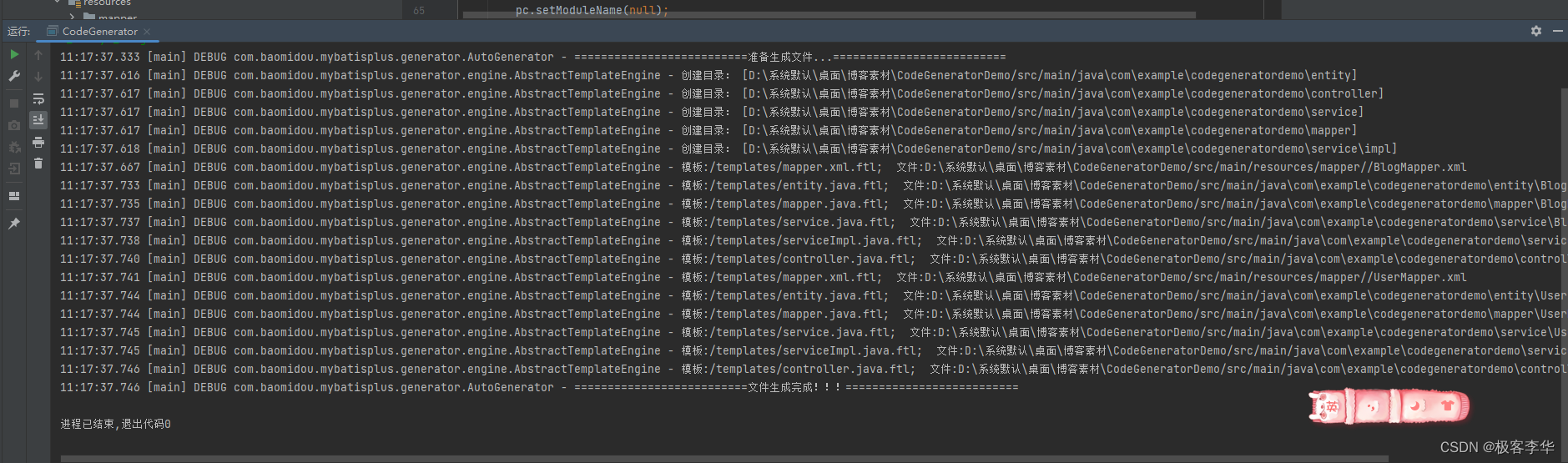 // 演示例子,执行 main 方法控制台输入模块表名回车自动生成对应项目目录中