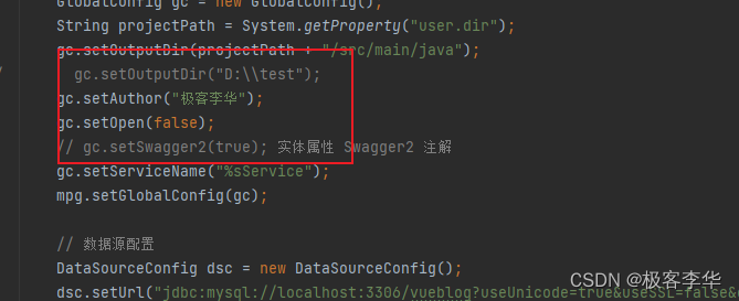 gc.setOutputDir(projectPath + "/src/main/java");