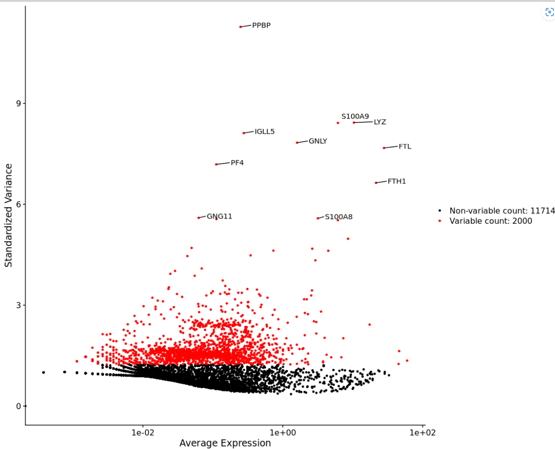 pbmc <- FindVariableFeatures(pbmc, selection.method = "vst", nfeatures = 2000)
