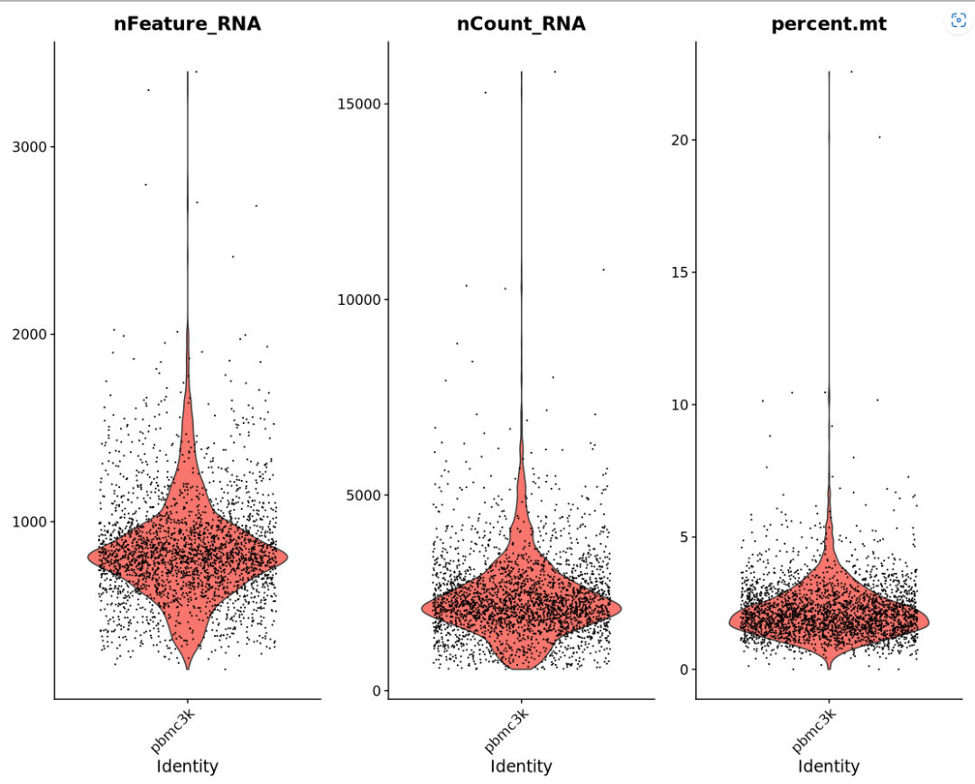 pbmc["percent.mt"] <- PercentageFeatureSet(pbmc, pattern = "^MT-")