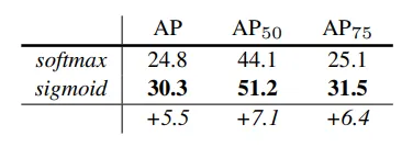 通过每类二进制掩码(S型)进行解耦比多项式掩码(Softmax)具有很大的增益。