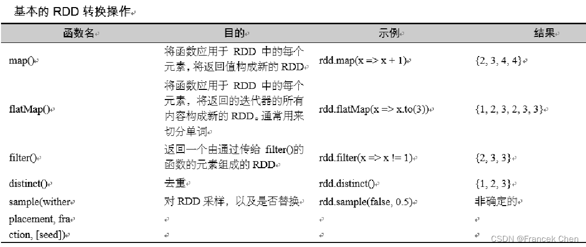 转换(Transformation)操作:将一个RDD转换为一个新的RDD。