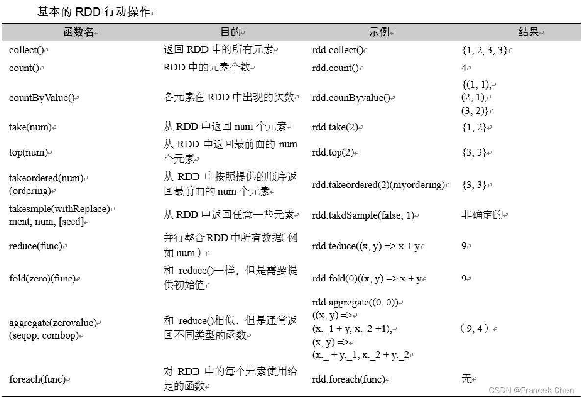 行动(Action)操作:行动操作会触发Spark提交作业,对RDD进行实际的计算,并将最终求得的结果返回到驱动器程序,或者写入外部存储系统中。