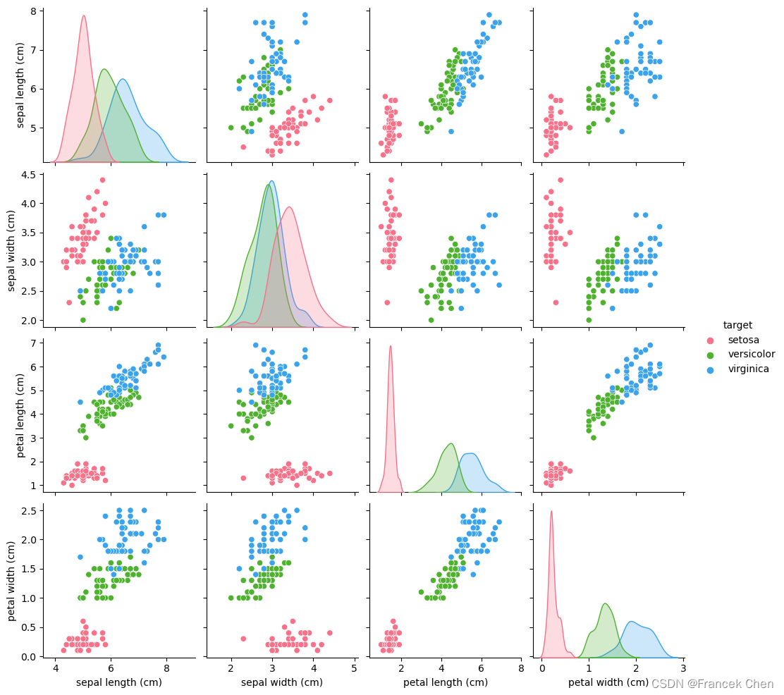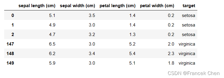 iris_data['target']=iris.target_names[iris.target] #将数据集的标签转换为DataFrame格式