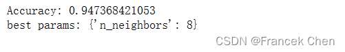 y_pred=knn.predict(X_test)最简单的评估方法:就是调用估计器的score(),该方法的两个参数要求是测试集的特征矩阵和标签向量。