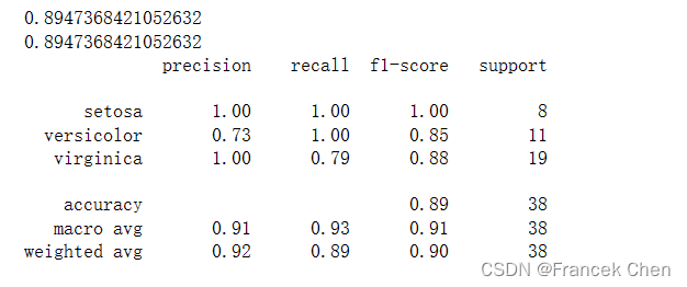 ACC = metrics.accuracy_score(y_test,y_pred) # 准确度ACC=(tp+tn)/(tp+tn+fp+fn)