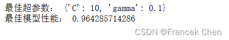 在这个示例中,我们首先创建了一个GridSearchCV对象,并指定了要优化的模型(这里使用了支持向量机模型 SVC),以及要搜索的超参数组合param_grid。然后我们使用训练集数据对GridSearchCV对象进行拟合。拟合完成后,我们可以通过best_params_属性获取最佳超参数组合,通过best_score_属性获取对应的模型性能。