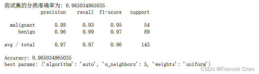 print("测试集的分类准确率为:",svc.score(X_test,y_test))(3)kNN算法模型性能评估: