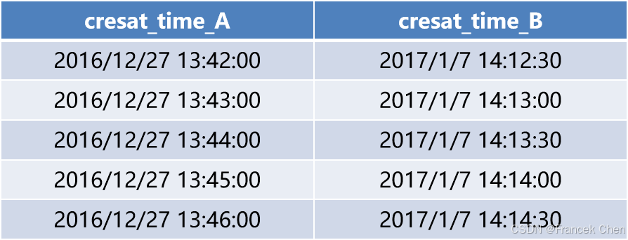 时间不一致是指数据在合并或者联立后时间字段出现时间范围、时间粒度、时间格式和时区不一致等情况。 时间范围不一致通常是不同表的时间字段中所包含的时间的取值范围不一致,如表所示,两张表的时间字段的取值范围分别为2016年1月1日—2016年2月29日和2016年1月15日—2016年2月18日,此时如果需要联立这两张表,就需要对时间字段进行补全,否则会产生大量的空值或者会导致报错。
