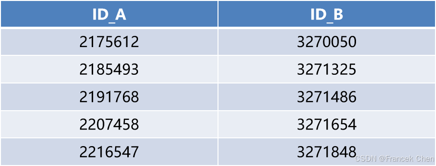 两个名称相同的字段所代表的实际意义不一致。如表所示,数据源A中的ID字段和数据源B中的ID字段分别描述的是菜品编号和订单编号,即描述的是不同的实体。