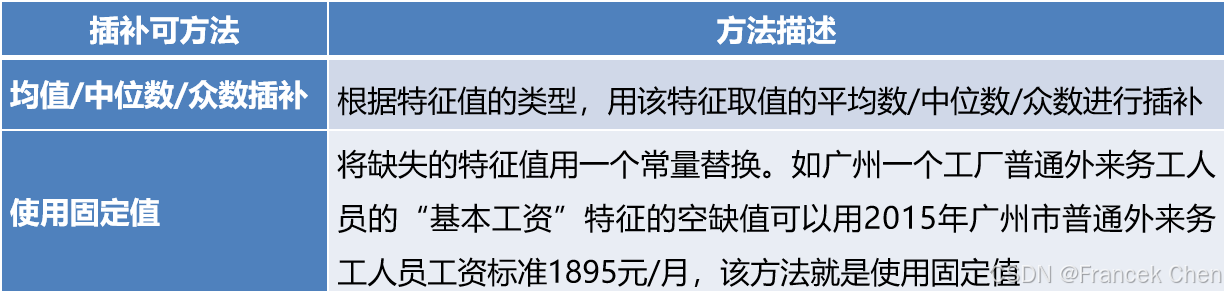 在Python中,可以利用如表所示的缺失值插补函数和方法插补缺失值。