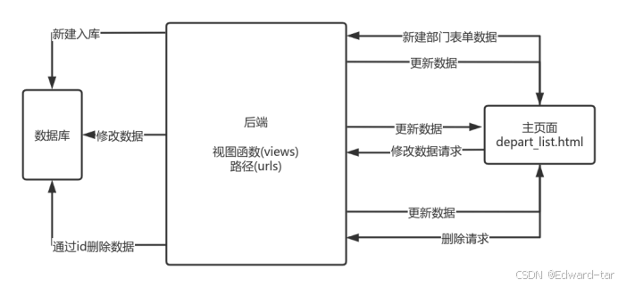 return render(request, "depart_edit.html", {"obj": obj})简单的POST请求,数据库存储,传参显示。可以参考用户编辑逻辑。