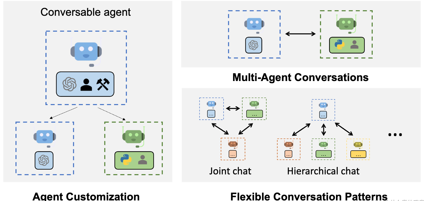 从本质上讲,AutoGen 是一个多代理系统。在这里,代理就像是一个个智能小助手,它们各自具备特定的功能和任务,能够相互协作、交流,共同完成复杂的任务。这些代理可以根据不同的需求和场景进行定制化设计,就像搭建积木一样,开发者可以根据自己的想法,将不同功能的代理组合在一起,构建出一个功能强大的智能系统。