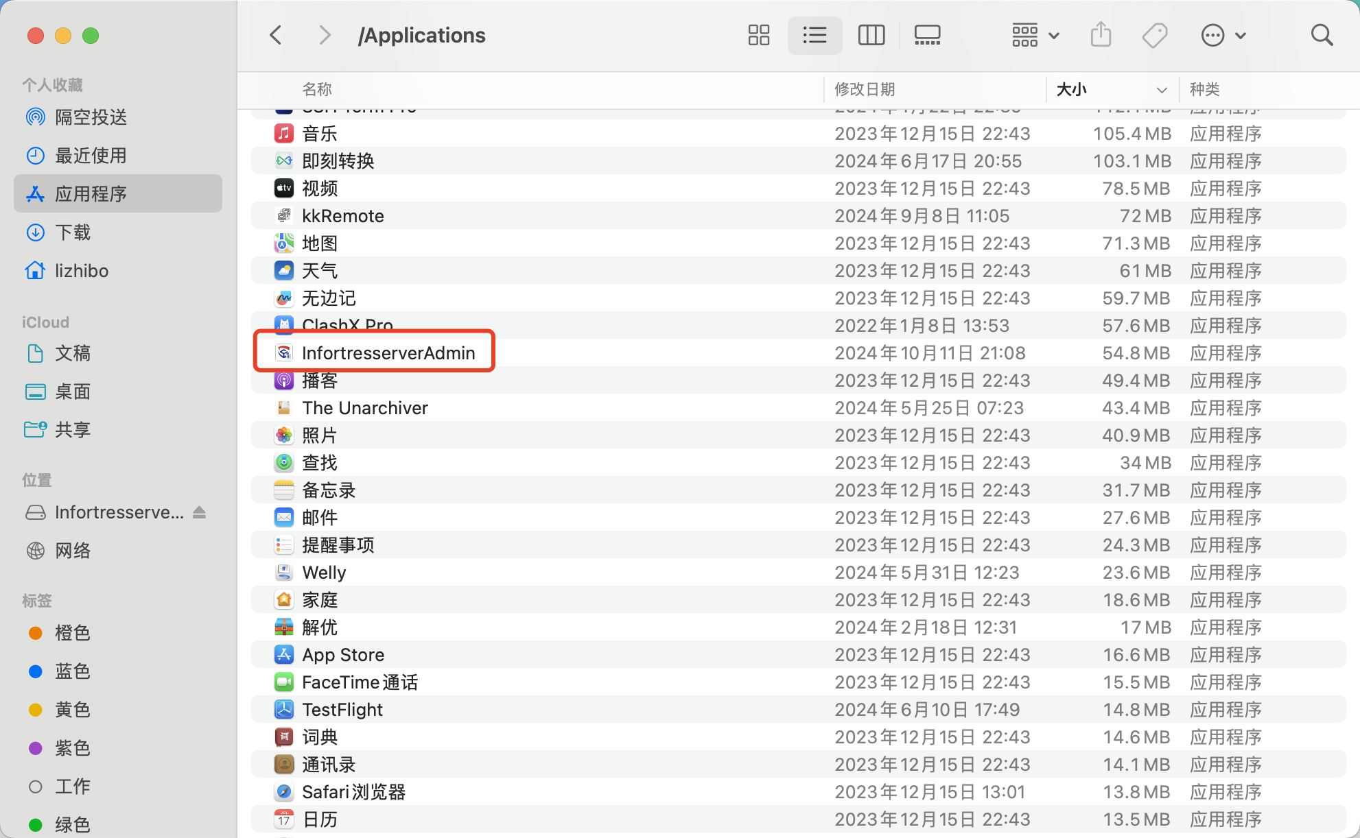 访问官网 下载页面选择下载InfortresserverAdmin.dmg。双击InfortresserverAdmin.dmg,在弹出的对话框中将InfortresserverAdmin 拖入到Applications文件夹(应用程序)