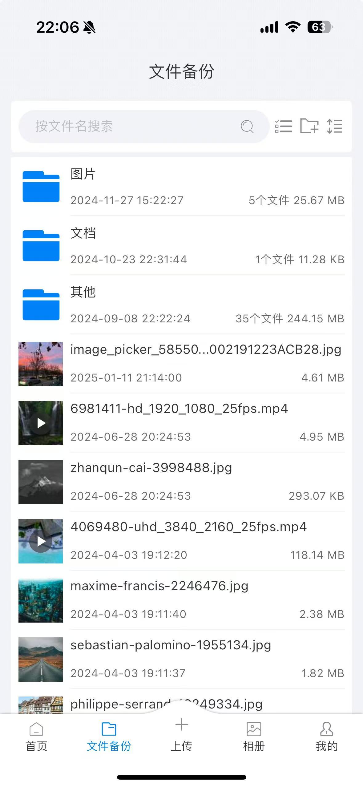 在文件备份功能页面,您可以按照目录结构浏览备份的所有文件,同时支持搜索和排序,新建文件夹,文件重命名,删除文件和文件夹,移动文件夹等功能。删除文件后会进入回收站,只有从回收站彻底删除才会从服务器上彻底删除文件。