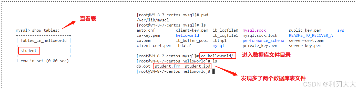 可以得到结论,所谓的 在数据库内创建表,本质就是在数据库文件目录下创建对应的文件即可!