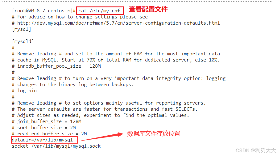 数据库文件都存放在哪里,这可以在配置文件中看到: