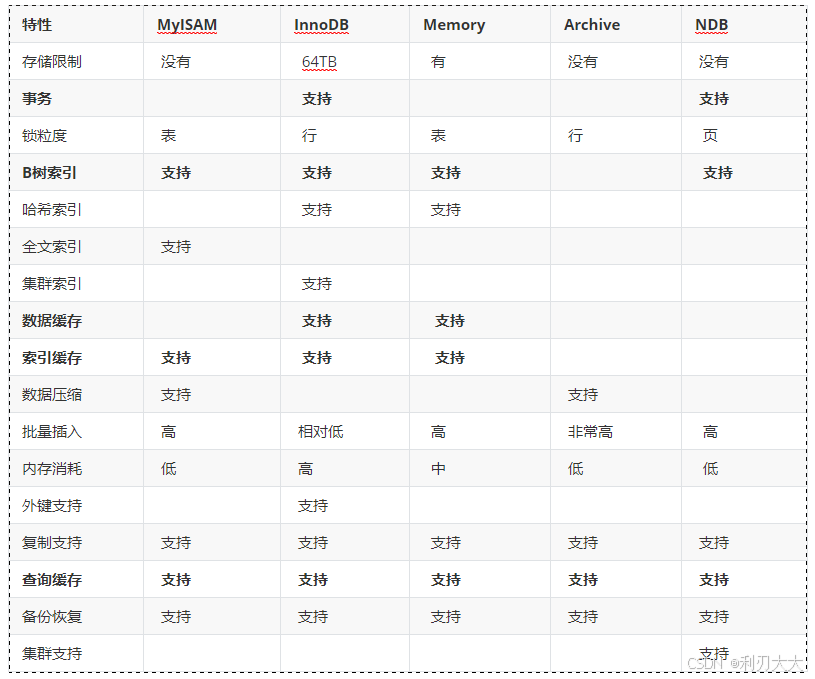 等,每个存储引擎都有不同的特性和适用场景,使用户可以根据需求选择合适的存储引擎。 MySQL