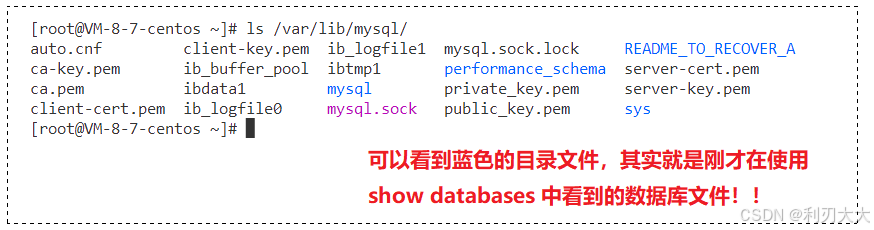 可以很明显的看到这些目录,和我们使用服务端指令 show databases