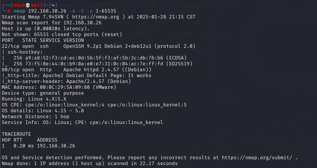我们知道靶机的IP地址在192.168.30.26后使用namp扫描靶机。