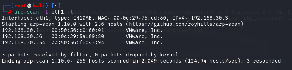 我是用kali的arp-scan,也可以用namp扫网段扫出来。这里可以用很多工具扫出来之举例一种。