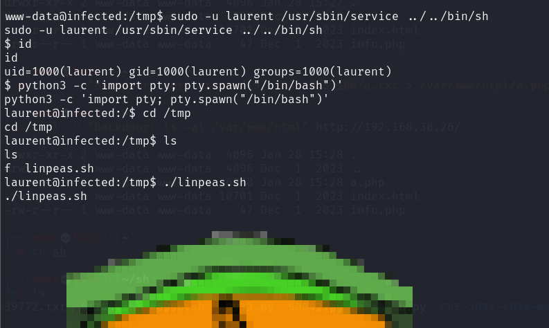 sudo -u laurent /usr/sbin/service ../../bin/sh