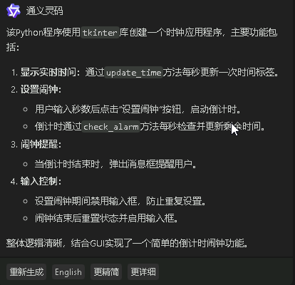 check_alarm 方法负责检查闹钟是否应该触发,更新倒计时标签,并在时间到时显示一个消息框。