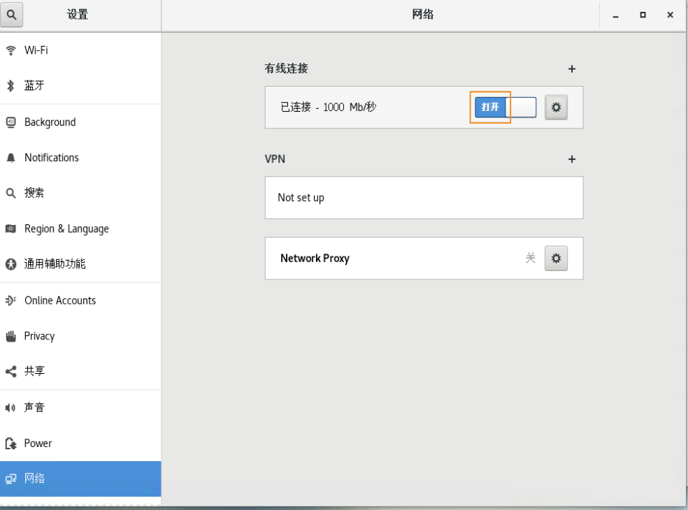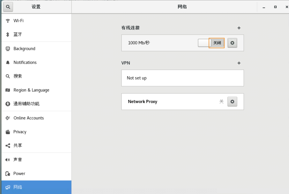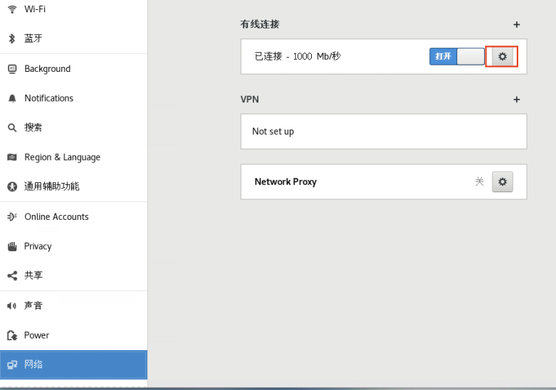 在左边配置选项中找到网络,在右边有线连接中选择下图红色按钮
