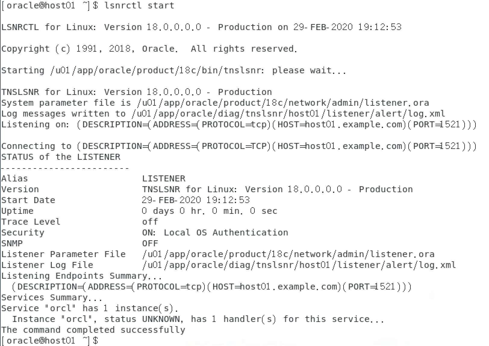 以下命令启动oracle监听服务,必须保证成功,如果出现错误,很可能是主机名称或者IP地址不正确。