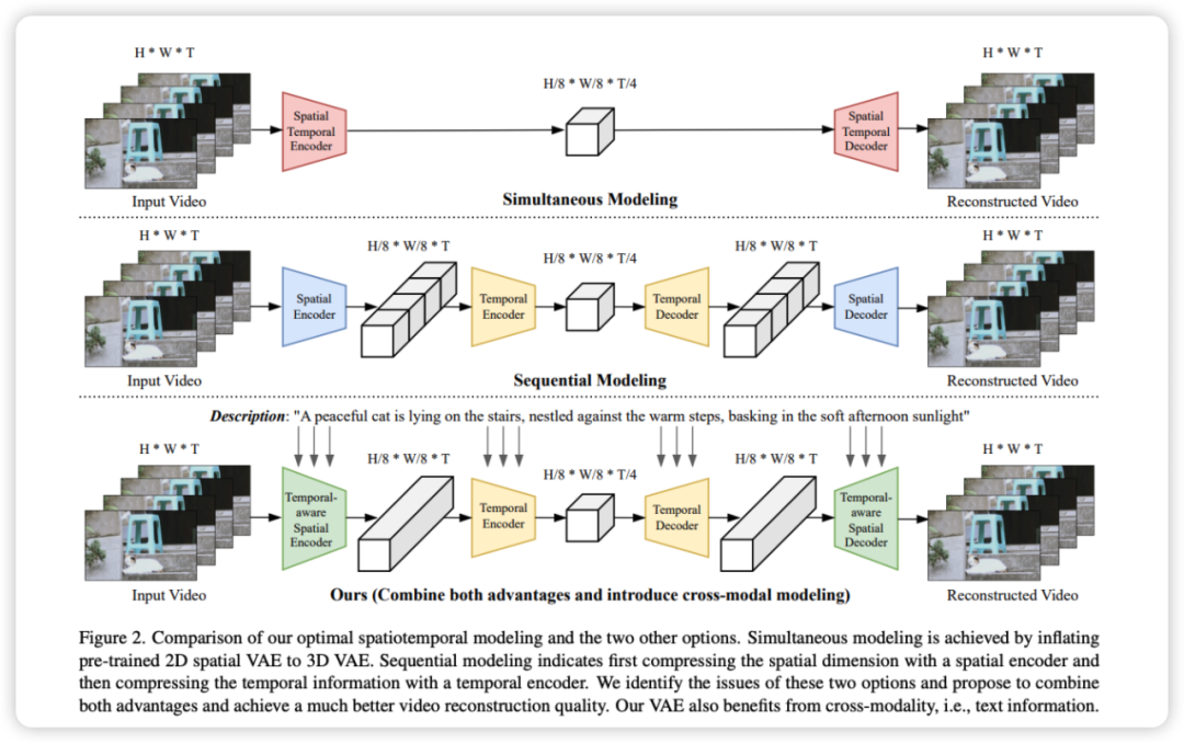 为了解决上述问题,VideoVAE + 提出了一种新的 cross-modal Video VAE 架构,其设计的关键点包括:
