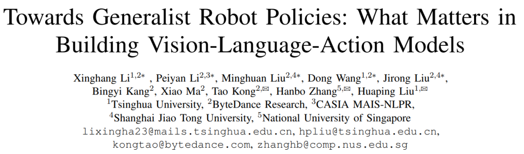 本文作者来自清华大学、字节跳动、中科院自动化所、上海交通大学和新加坡国立大学。作者列表:李兴航、李沛言、刘明桓、王栋、刘济榕、康炳易、马骁、孔涛、张翰博和刘华平。第一作者李兴航是清华大学计算机系博士生。通讯作者是字节跳动机器人研究员孔涛,新加坡国立大学博士后张翰博和清华大学计算机系教授刘华平。