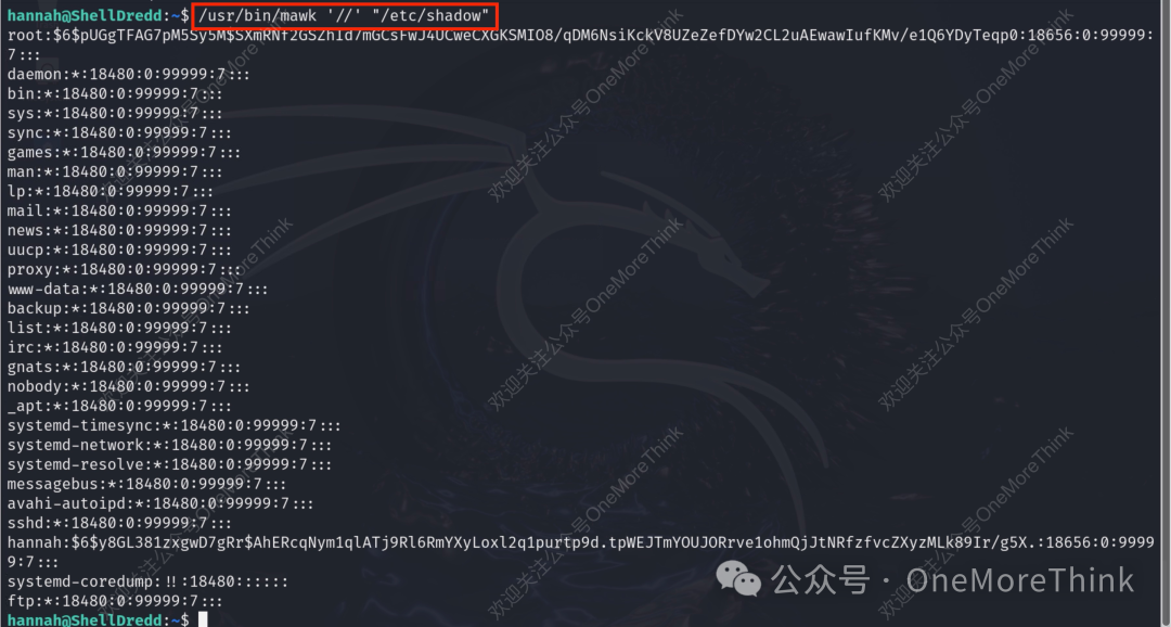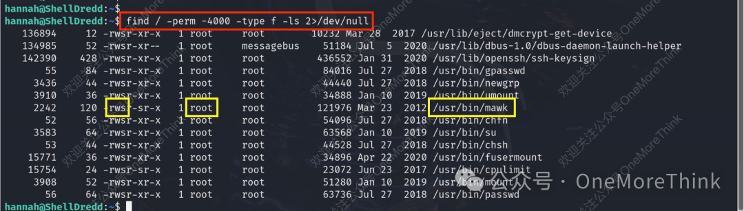 mawk命令在执行时,会以该命令属主root用户的权限执行。