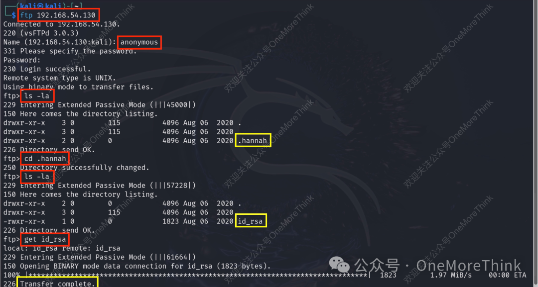 匿名访问21/FTP服务,发现一个私钥,下载到本地。